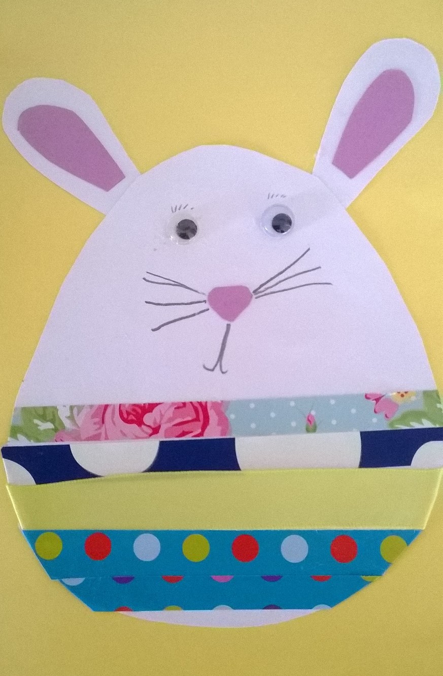 I do like my bunting, so there is more in the Living Room! I am a little disappointed with my tulips this year, the promise of the bright buds has not matured and at only a few day’s old I think they look like they’re withering. However there is plenty of cuteness here with the decorations. Finally here is Little Miss’ Easter card this year which I love!
