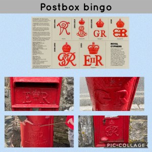 On my favourite podcast With Me Now, the presenters started a conversation about post boxes. It was one of those conversations that spiked my interest and on our walk on Thursday we started to look at the different ciphers on the letter boxes. I then found a visual about the insignias and on each walk since, we’ve been looking for different post boxes. Its a great idea and has added something to our daily walks. With this week’s wet weather we’ve been on the streets rather than through the fields which could be a bit muddy.